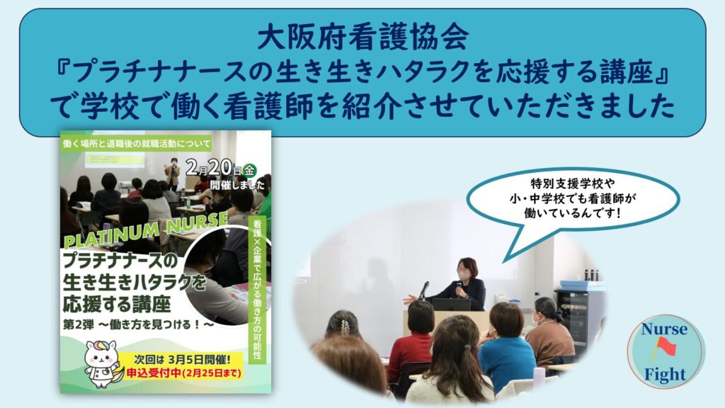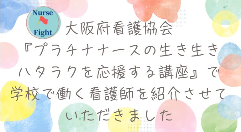 大阪府看護協会『プラチナナースの生き生きハタラクを応援する講座』で学校で働く看護師を紹介させていただきました