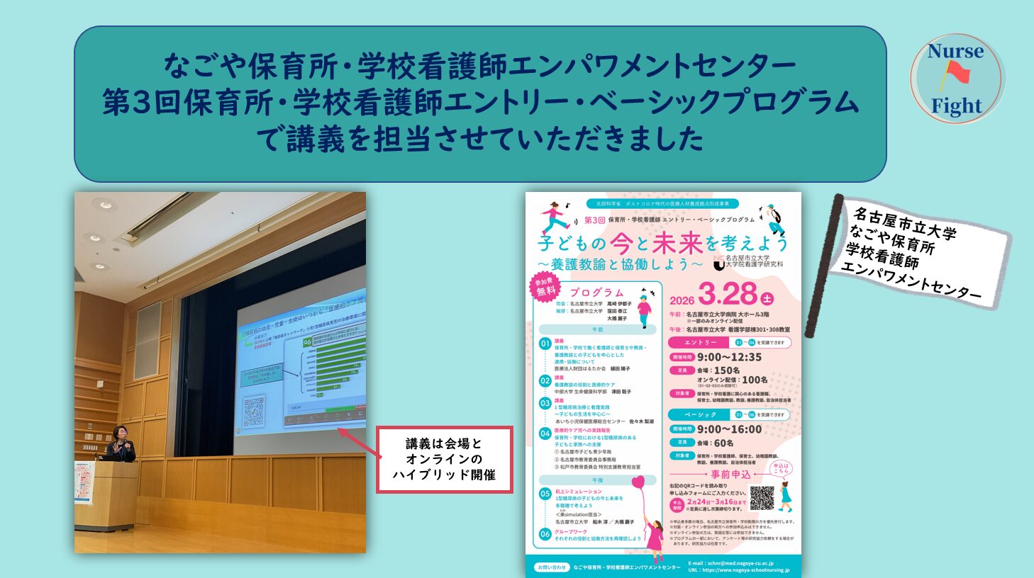 昨日私は、なごや保育所・学校看護師エンパワメントセンター主催の第3回保育所・学校看護師エントリー・ベーシックプログラムで講師のひとりとして講義を担当させていただきました。
